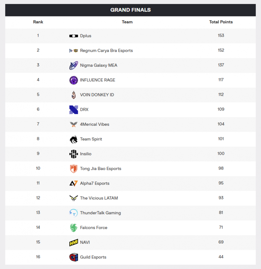 - 16 đội đứng đầu sẽ tiến vào Grand Finals.