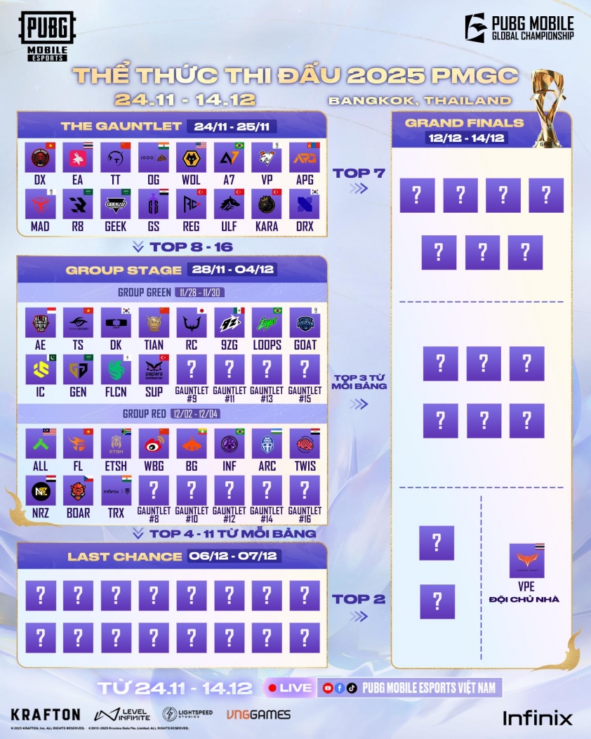 Giải vô địch thế giới PUBG Mobile - PMGC 2025 diễn ra từ ngày 24/11 - 14/12 tại Thái Lan.
