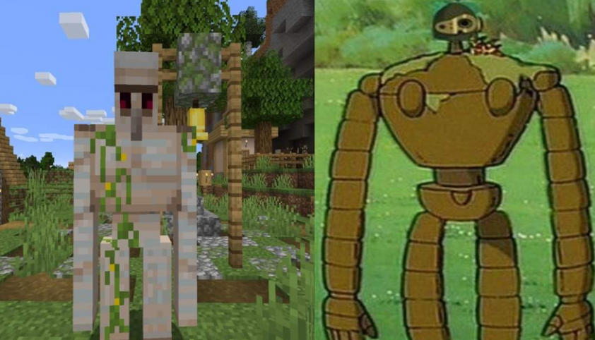 Trong Minecraft, một golem sắt có thể tặng cho dân thường hoặc trẻ em một bông hồng màu đỏ. Hành động này khiến người ta nghĩ ngay đến bộ phim hoạt hình “Laputa: Lâu đài trên không” của đạo diễn người Nhật Bản Hayao Miyazaki.
