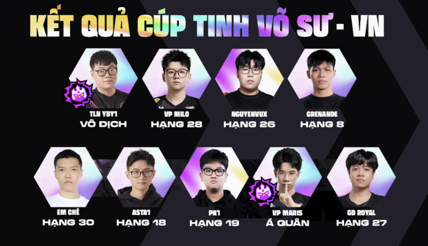 Ngoài YBY1, các tuyển thủ Việt Nam khác cũng ghi dấu ấn mạnh mẽ. Grenade kết thúc Cúp Tinh Võ Sư APAC ở vị trí thứ 3, trong khi VP Maris gây tiếng vang lớn tại Cúp Tinh Võ Sư Trung Quốc khi giành ngôi Á quân, vượt qua hàng loạt đối thủ tên tuổi để tích lũy thêm nhiều điểm số quan trọng.