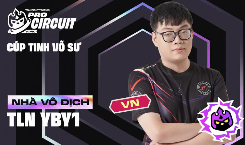 Thể thao điện tử Việt Nam vừa ghi thêm dấu ấn rực rỡ khi tuyển thủ Bùi Tuấn Kiên (YBY1) xuất sắc đăng quang Cúp Tinh Võ Sư, giải đấu nằm trong Hệ thống Ngoại Hạng APAC của Đấu Trường Chân Lý mùa 15. Thành tích này giúp YBY1 chính thức trở thành đại diện đầu tiên của Việt Nam góp mặt tại Chung Kết Thế Giới DTCL 2025.