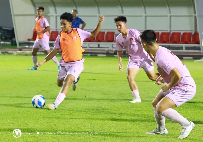 Để làm quen ánh đèn, BTC chủ nhà Indonesia đã bố trí cho thầy trò HLV Trần Minh Chiến buổi tập vào lúc 18h00 chiều ngày 24/6.