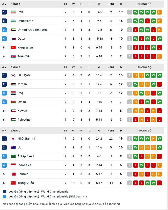 Ở lượt trận thứ 7 diễn ra hôm 20/3, ĐT Indonesia không thể gây bất ngờ trước chủ nhà Úc khi phải nhận thất bại với tỷ số cực đậm 1-5. Trong khi đó, ĐT Bahrain thua trắng với cách biệt 0-2 trước đối thủ rất mạnh là ĐT Nhật Bản.