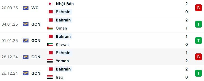 - Phong độ gần đây của Bahrain: 3 thắng, 2 thua