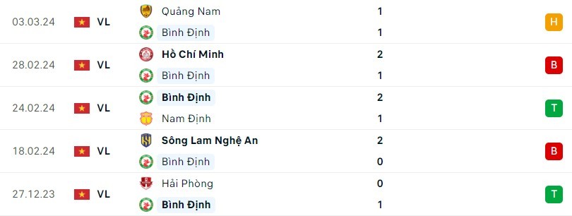 - Phong độ gần đây của Bình Định: 2 thắng, 1 hòa, 2 thua