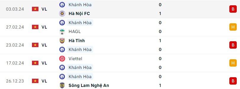 - Phong độ gần đây của Khánh Hòa: 2 hòa, 3 thua