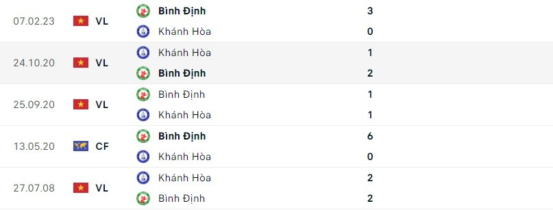 Phong độ gần đây của Bình Định vs Khánh Hòa