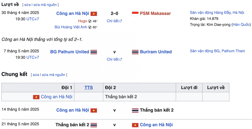 Chính thức vượt qua đại diện Indonesia ở 2 lượt trận bán kết, CAHN sẽ chờ đợi đối thủ của mình sau khi trận bán kết còn lại diễn ra nốt lượt về. Đây là cuộc nội chiến Thái Lan giữa 2 đội bóng hàng đầu xứ Chùa Vàng là Buriram United và BG Pathum United. Ở trận lượt đi, Buriram United đã xuất sắc giành chiến thắng với tỷ số 3-1.