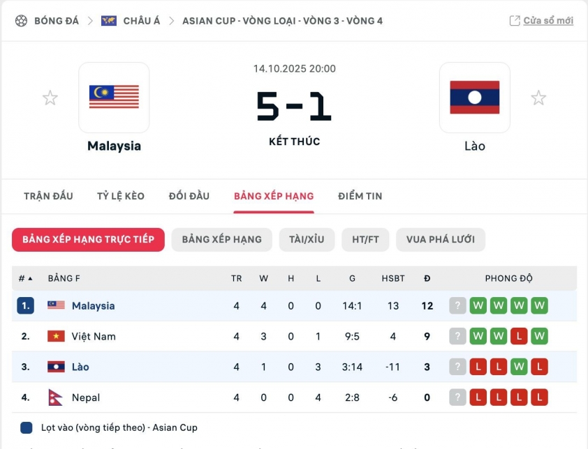 Rõ ràng dù chơi cố gắng nhưng Lào chỉ có thể đáp ứng được tốt các yêu cầu chiến thuật trong hiệp 1. Sau đó sang hiệp 2, thể lực đi xuống khiến hàng thủ bộc lộ nhiều điểm yếu. Với thắng lợi ấn tượng 4-1 trước Lào, Malaysia tiếp tục dẫn đầu bảng F vòng loại Asian Cup 2027 với 12 điểm sau 4 trận toàn thắng.