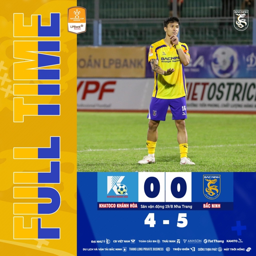 Bắc Ninh FC bất ngờ đánh bại Khánh Hòa trên chấm 11m ở vòng 1/8 Cúp Quốc gia.