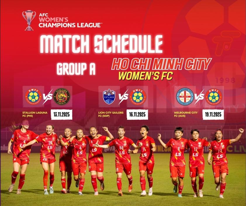 Sau khi bảo vệ thành công ngôi vương ở giải quốc nội, CLB bóng đá nữ TP.HCM I đang tất bật hướng đến thử thách mới tại AFC Champions League nữ 2025/26. Ở giải đấu này, đại diện Việt Nam nằm ở bảng A, chung bảng với Melbourne City (Australia), Stallion Laguna (Philippines) và Lion City Sailors (Singapore).