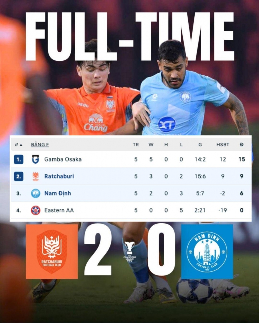 Trận đấu giữa Ratchaburi và Nam Định đã kết thúc với chiến thắng đầy kịch tính thuộc về đội chủ nhà, dù Nam Định là đội đã tạo ra nhiều cơ hội nguy hiểm hơn trong phần lớn thời gian thi đấu.