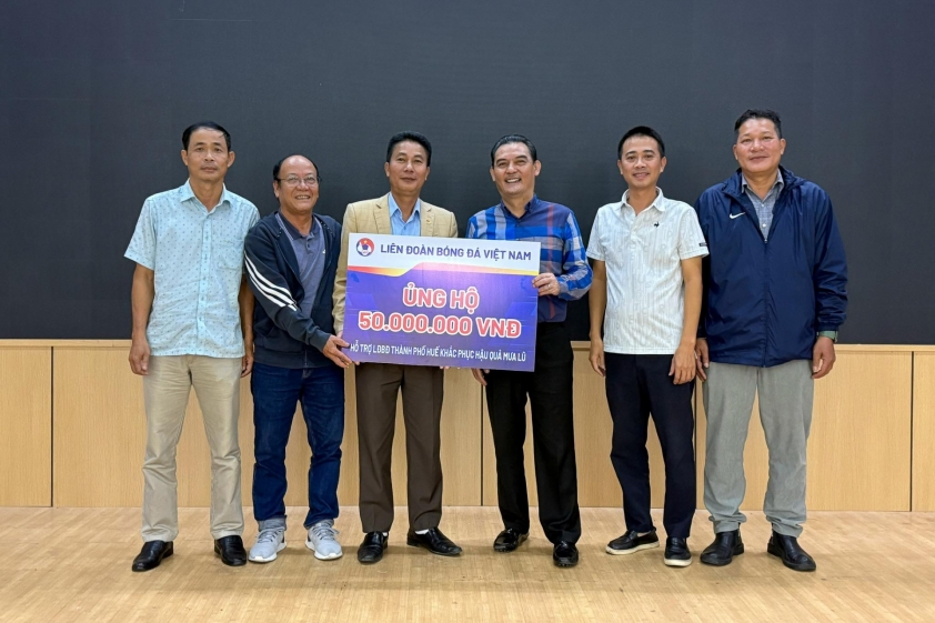 Thời gian qua, do ảnh hưởng của mưa lũ kéo dài, nhiều công trình thể thao và cơ sở phục vụ hoạt động bóng đá tại thành phố Huế bị hư hại, khiến phong trào bóng đá bị gián đoạn. Nhằm kịp thời chia sẻ khó khăn, LĐBĐVN đã hỗ trợ 50 triệu đồng cho LĐBĐ thành phố Huế để khắc phục hậu quả thiên tai, từng bước ổn định hoạt động trở lại.
