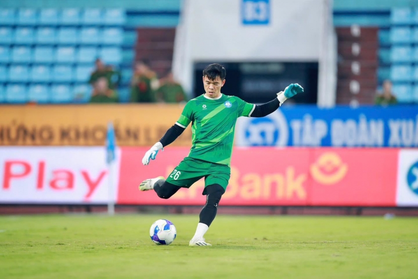 Thủ môn Nguyên Mạnh tiết lộ việc có thể phải bỏ khung thành lên trên thi đấu khi CLB Nam Định thiếu người.