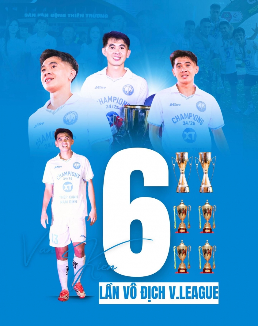 Nếu như Nguyên Mạnh mới chỉ có chức vô địch V-League thứ 3 thì một đồng đội của anh ở CLB Nam Định đã thiết lập kỷ lục mới. Hậu vệ Văn Kiên đã có chiếc cúp V-League thứ 6 trong sự nghiệp và trở thành cầu thủ vô địch quốc nội nhiều nhất lịch sử.