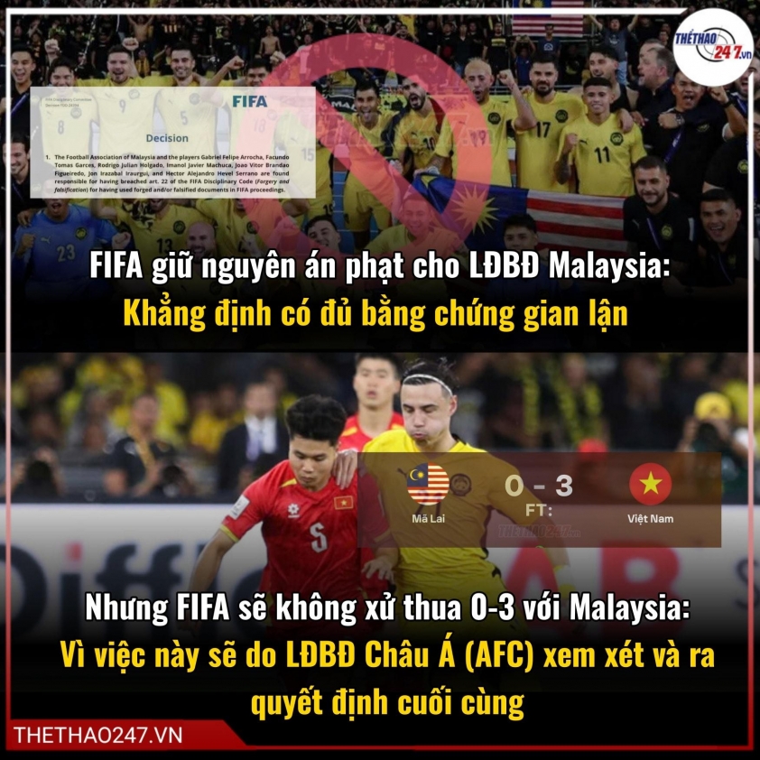 Dù Malaysia vẫn đang thời gian thu thập thông tin để kháng cáo nhưng với những bằng chứng đanh thép mà FIFA vừa công bố, dường như mọi việc sẽ sớm khép lại. Rõ ràng phía LĐBĐ Malaysia đã sửa giấy tờ của 7 cầu thủ này để nhập tịch trái phép. Hiện tại điều quan tâm hơn cả là ĐT Việt Nam có được xử thắng 3-0 ở trận đấu với Malaysia hồi tháng 6/2025 hay không.