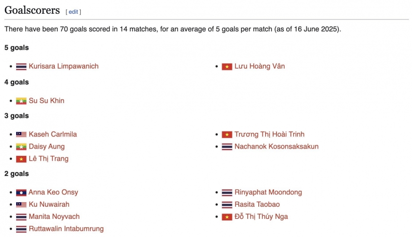 Lưu Hoàng Vân của U19 nữ Việt Nam có cơ hội trở thành vua phá lưới giải U19 nữ Đông Nam Á 2025.