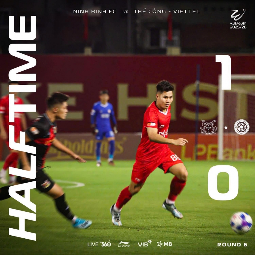 Bước ngoặt lớn của hiệp một đến ở phút 37. Trung vệ Bùi Tiến Dũng (Viettel) phạm lỗi trong vòng cấm với Gustavo, dẫn đến thẻ đỏ trực tiếp cho anh và một quả phạt đền cho đội chủ nhà. Trên chấm 11m, Đức Chiến đã không mắc sai lầm nào để ghi bàn vào lưới đội bóng cũ, mở tỷ số 1-0 cho Ninh Bình. Hiệp một kết thúc với lợi thế dẫn trước thuộc về Ninh Bình.