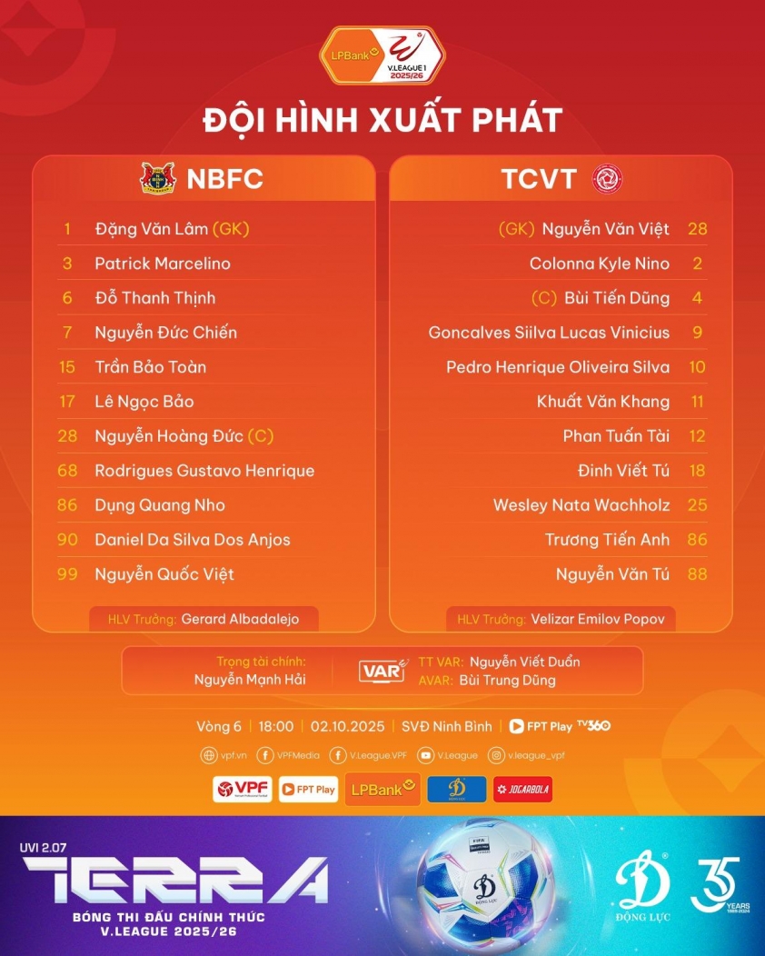 - Thời gian thi đấu: 18h00 ngày 2/10/2025.