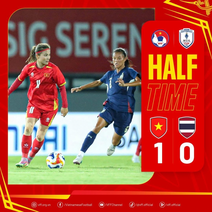 Hết hiệp 1, Nữ Việt Nam 1-0 Nữ Thái Lan