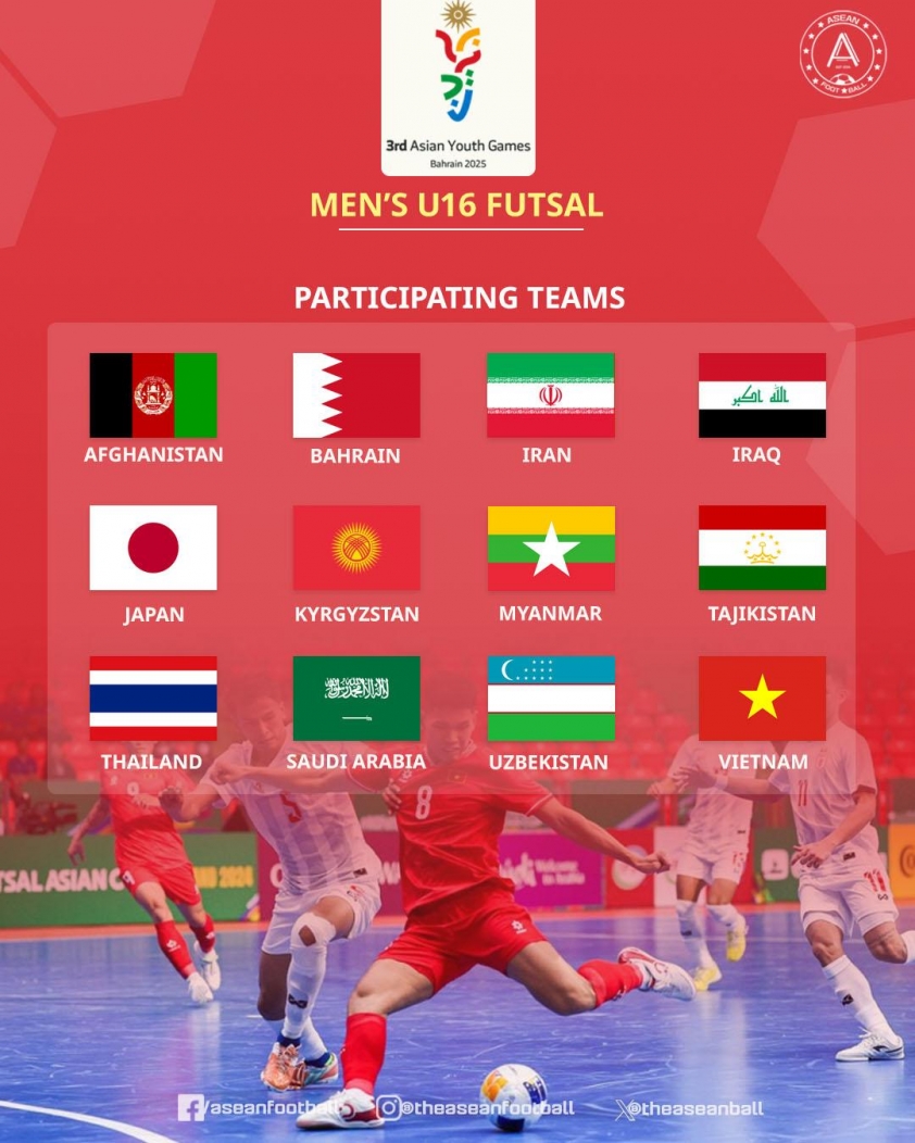 Mới đây, Hội đồng Olympic châu Á (OCA) đã công bố danh sách 12 đoàn thể thao xác nhận tham dự môn futsal. Đáng chú ý, Việt Nam cùng hai đội Đông Nam Á khác là Thái Lan và Myanmar sẽ cử đội tuyển futsal U16 tham dự sự kiện này.