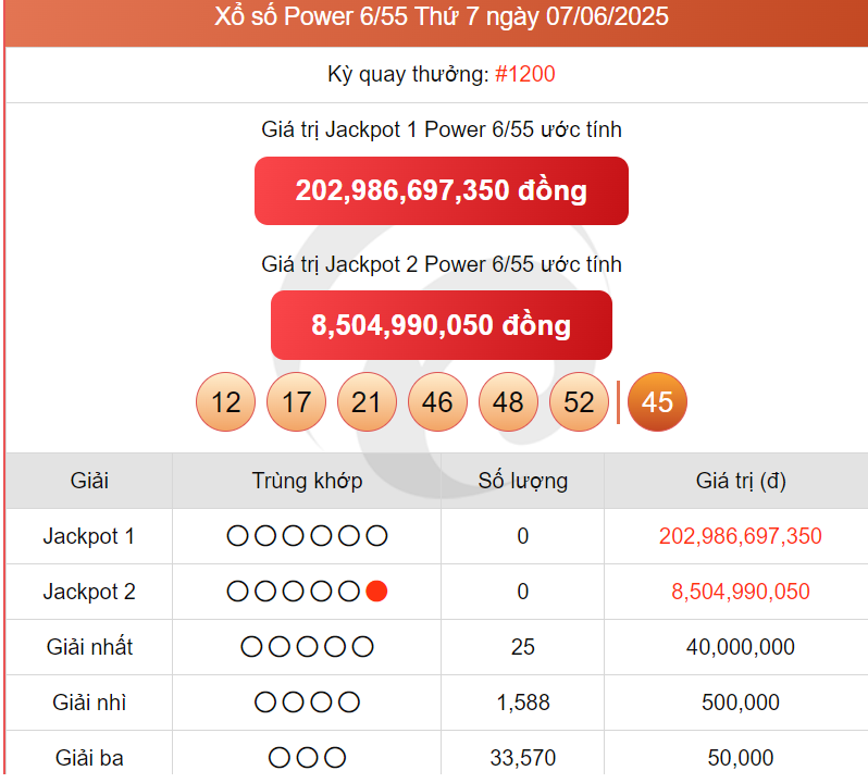 Trong ngày hôm nay 8/6/2025, Vietlott tiến hành quay số sản phẩm Power6/45 theo định kỳ chủ nhật hàng tuần.