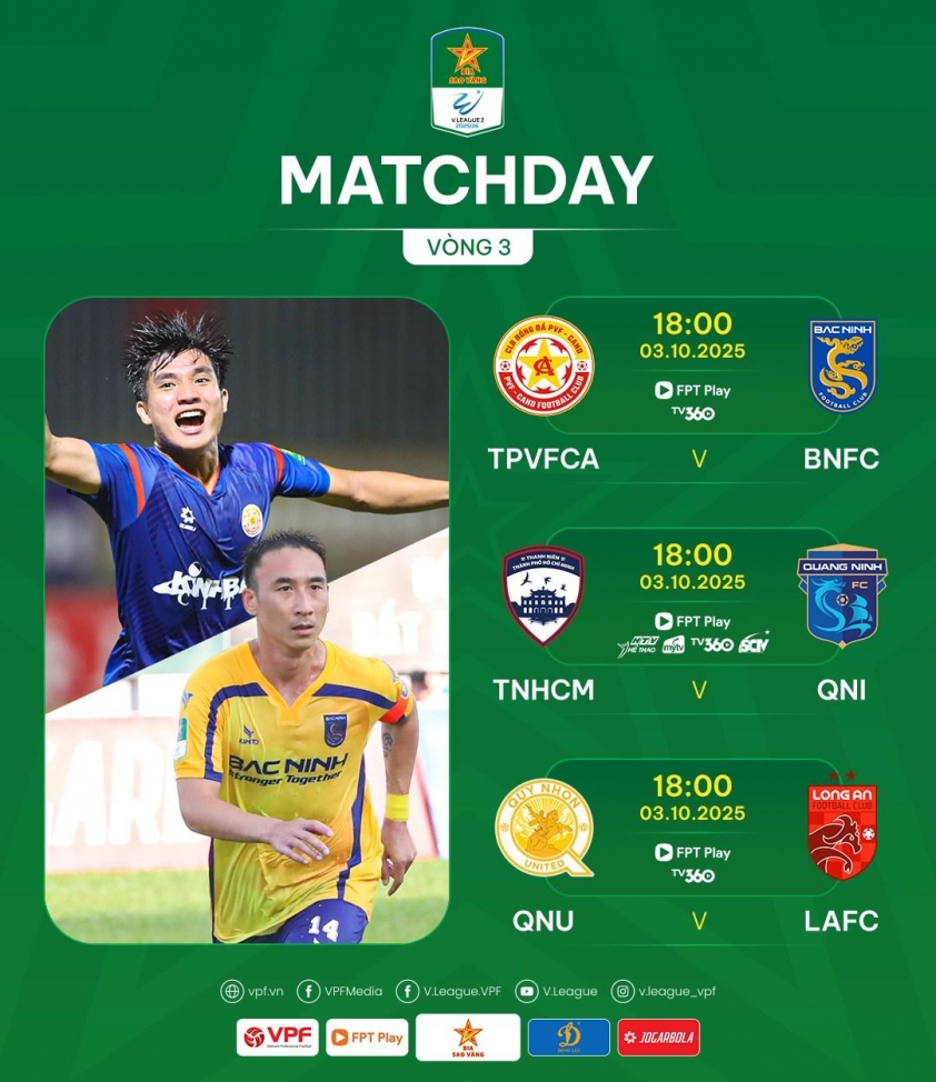 CLB TP.HCM tiếp tục mạch trận bất bại sau trận hòa 1-1 tại Cao Lãnh, trước chủ nhà Đồng Tháp. Các trận đấu của vòng 3 Giải hạng Nhất Quốc gia 2025/26 diễn ra chiều nay (3/10):