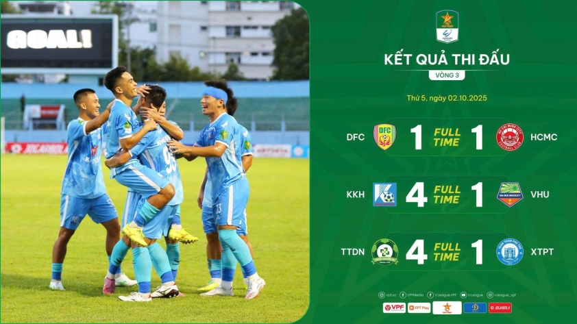 2/3 trận đấu sớm vòng 3 Giải hạng Nhất Quốc gia 2025/26 diễn ra chiều 2/10 diễn ra có kết quả thắng đậm cho đội chủ nhà. CLB Trường Tươi Đồng Nai, Khatoco Khánh Hòa tiếp tục mạch trận bất bại, cùng đạt chiến thắng tưng bừng 4-1 trước đội khách.