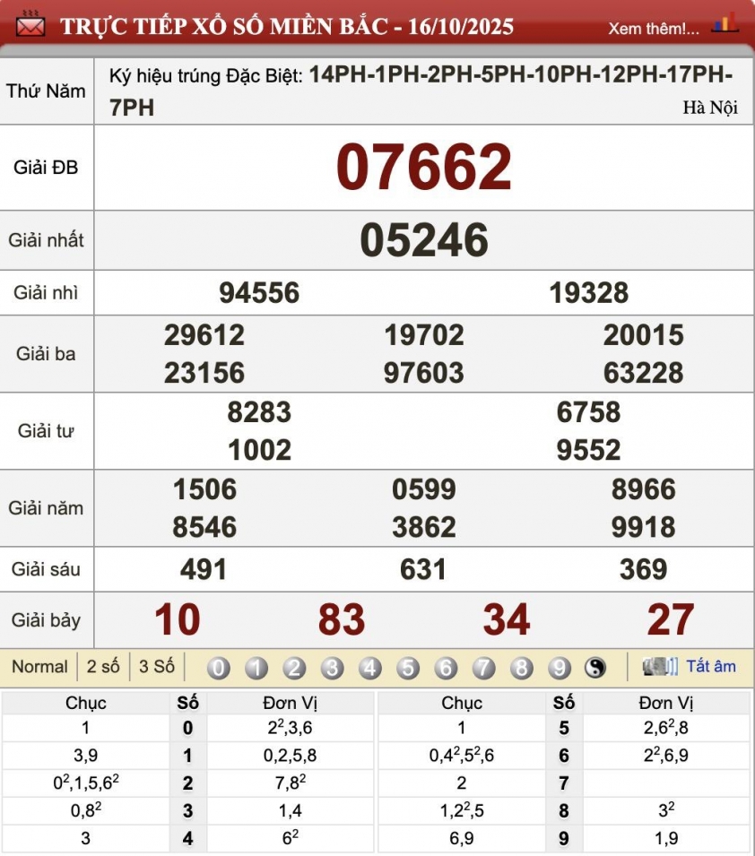 Kết quả xổ số miền Bắc (XSMB) hôm nay ngày 16/10