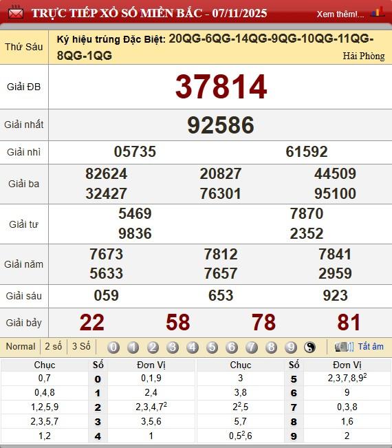 Kết quả xổ số miền Bắc (XSMB) hôm nay ngày 7/11