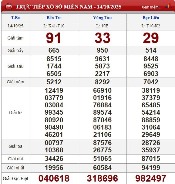 XSMN 14/10/2025 - Kết quả xổ số miền Nam hôm nay 14/10/2025