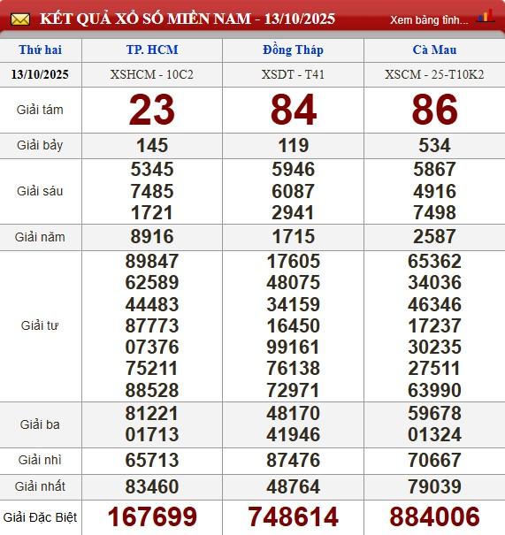 Kết quả xổ số miền Nam (XSMN) hôm nay ngày 13/10
