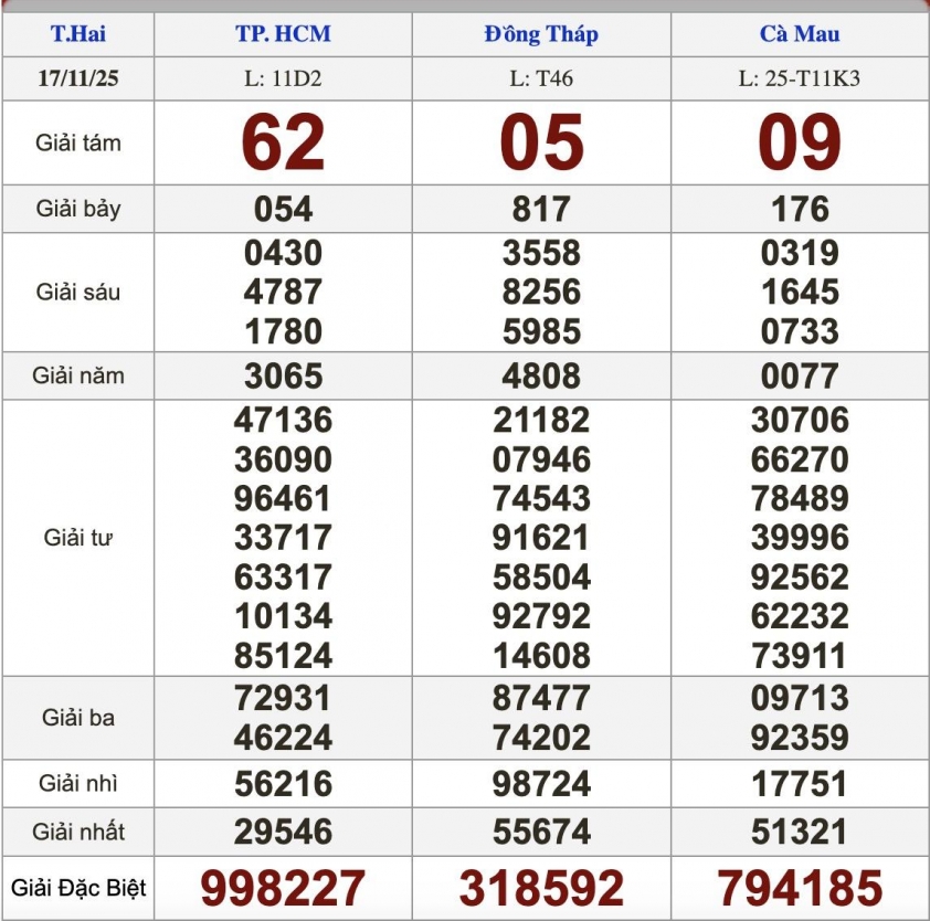 XSMN 17/11/2025 - Kết quả xổ số miền Nam hôm nay 17/11/2025