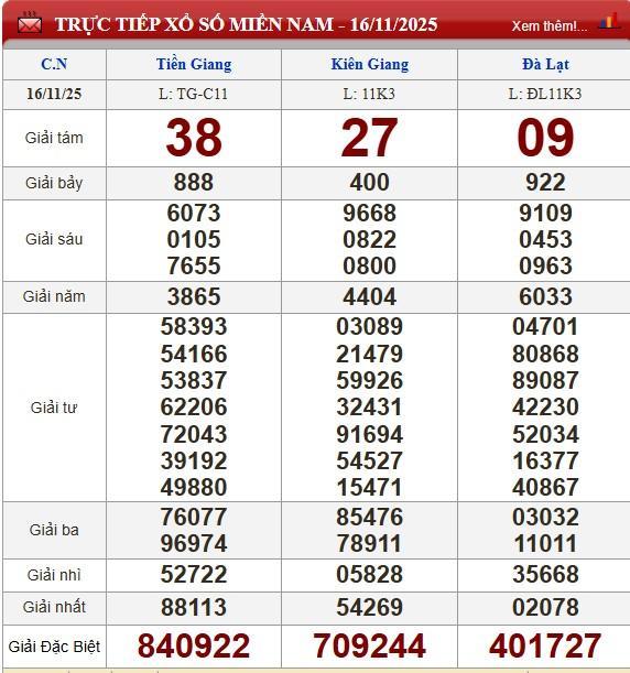 Kết quả xổ số miền Nam (XSMN) hôm nay ngày 16/11