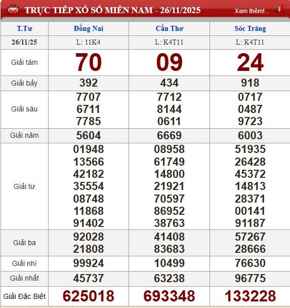 Kết quả xổ số miền Nam (XSMN) hôm nay ngày 26/11