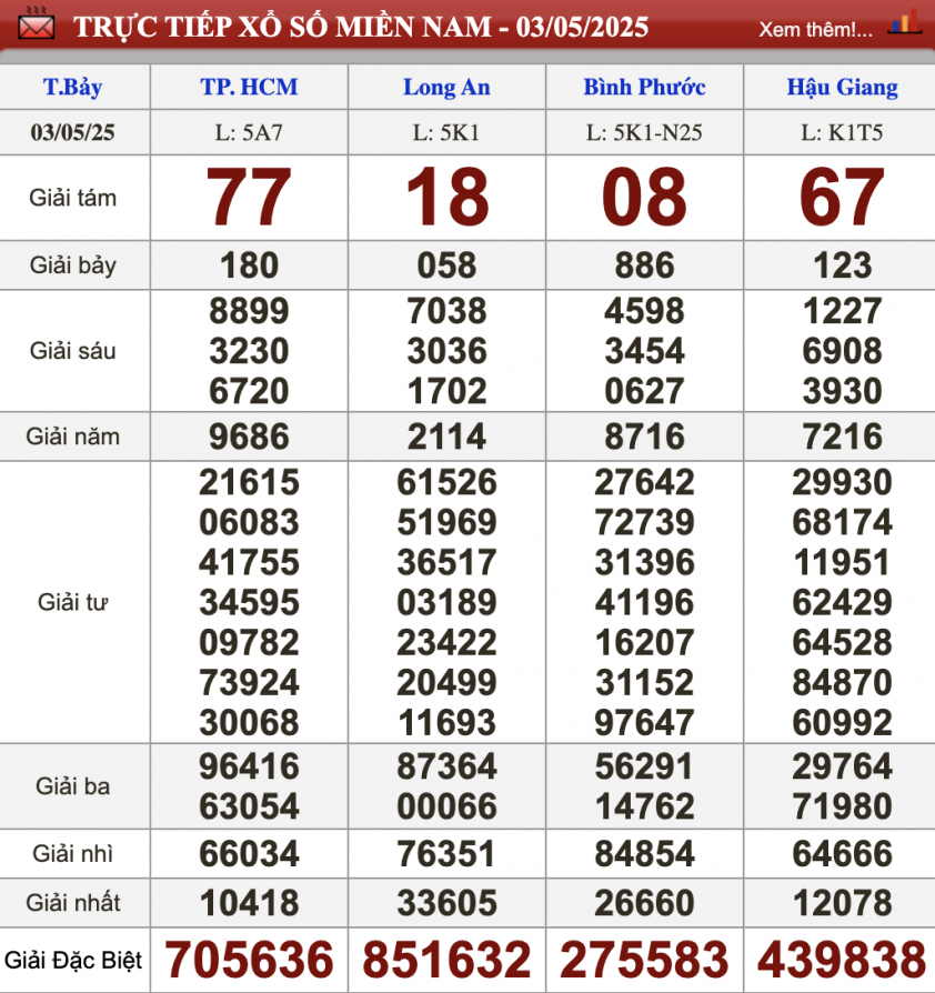 Kết quả xổ số miền Nam (XSMN) hôm nay ngày 3/5