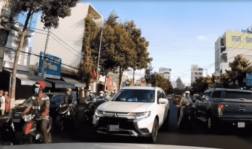 Theo đó, một tài xế lái chiếc Mitsubishi Outlander đã chọn cách lấn làn để vượt lên phía trước, thay vì xếp hàng chờ đèn khoảng 10 giây tại ngã tư đường Tôn Đức Thắng, phường Phú Thủy, thành phố Phan Thiết, tỉnh Bình Thuận.