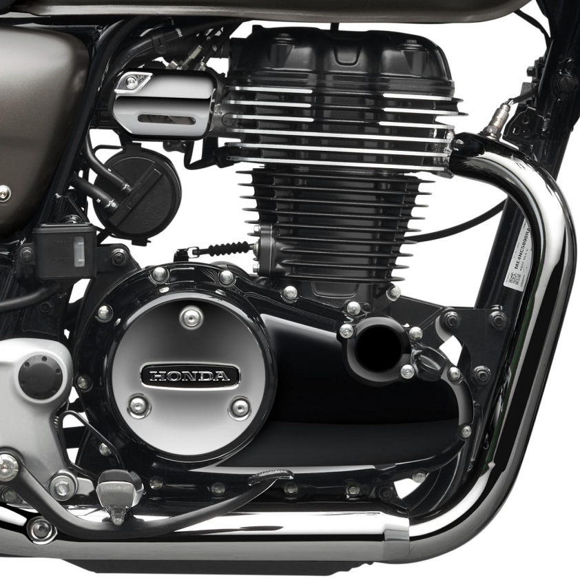 Honda CB350 H'ness mang phong cách giao hòa giữa nét cổ điển và hơi thở hiện đại. Xe sử dụng động cơ đặt thẳng đứng tạo cảm giác mạnh mẽ, khung sườn kiểu nôi kép ôm trọn động cơ, kết hợp cùng ống xả mạ chrome sáng bóng.