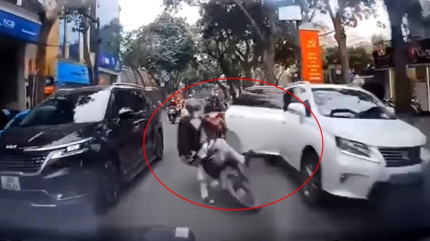 Chỉ một cú mở cửa ô tô bất cẩn cũng có thể khiến người đi xe máy ngã xuống đường, đối mặt nguy hiểm từ các phương tiện phía sau.
