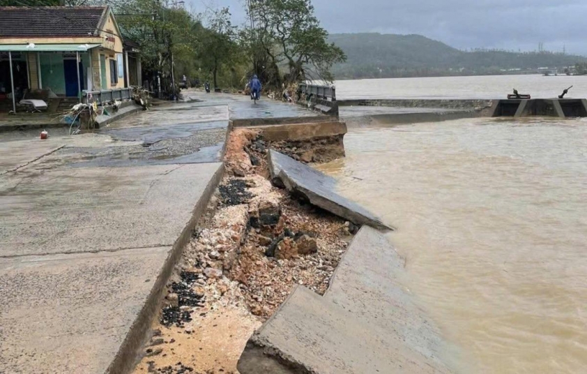Tại Gia Lai, đầu cầu Quý Đức trên tuyến Trường Sơn Đông - cung đường huyết mạch nối Ayun Pa với Ia Pa - bị lũ cuốn trôi từng mảng nhựa mặt đường. Đoạn xói lở kéo dài hơn 30 m khiến phương tiện không thể lưu thông an toàn.