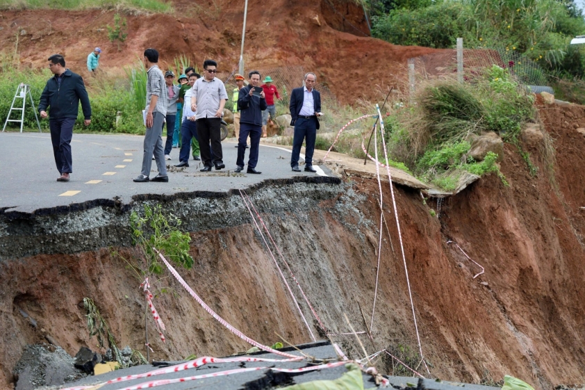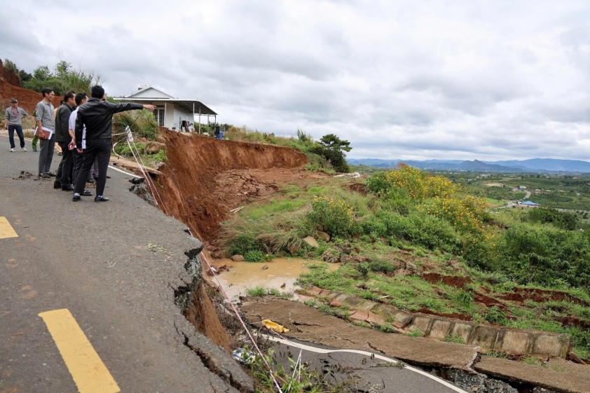 Tại Lâm Đồng, mưa lớn diện rộng đã gây sạt lở nhiều nơi. Tuyến đường từ xã Đan Phượng đi Tân Thành (nay thuộc xã Tân Hà, huyện Lâm Hà) bị nứt gãy kéo dài hơn 500 m, nền đường sụt sâu hơn 1 m khiến toàn tuyến bị chia cắt. Hệ thống rọ đá, mương thoát nước xô lệch, tiềm ẩn nguy cơ mất an toàn.
