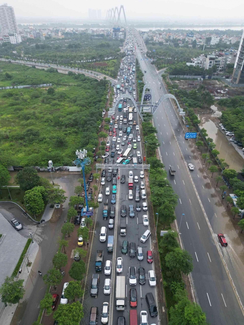 Đến trưa cùng ngày, tình trạng giao thông ở Hà Nội vẫn chưa cải thiện. Tại nhiều tuyến đường, dòng phương tiện bị dồn ứ, thậm chí có thời điểm gần như tê liệt, không thể di chuyển.