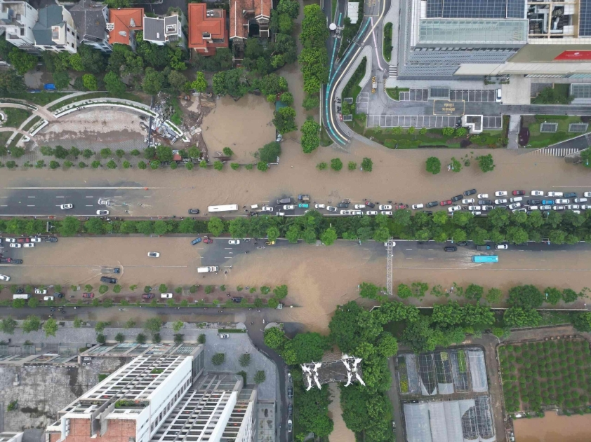 Không ít phương tiện mắc kẹt hàng giờ, không thể tiến cũng chẳng thể lùi. Người dân quanh khu vực lo lắng khi tình trạng ngập nước kéo dài nhiều giờ liền.