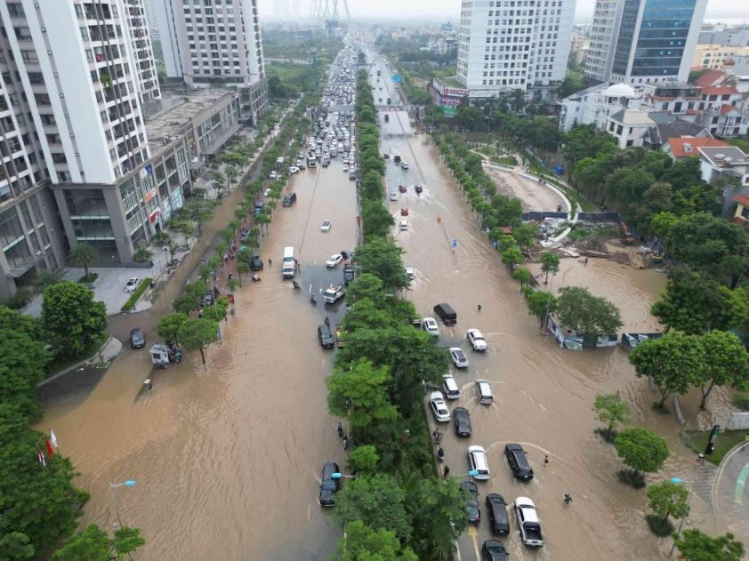 Dù trời đã tạnh mưa từ tối 27/8, đến sáng 28/8 nhiều tuyến đường trọng điểm tại Hà Nội vẫn ngập sâu, gây ùn tắc kéo dài. Giao thông rơi vào cảnh hỗn loạn, người dân khổ sở di chuyển qua các điểm ngập.