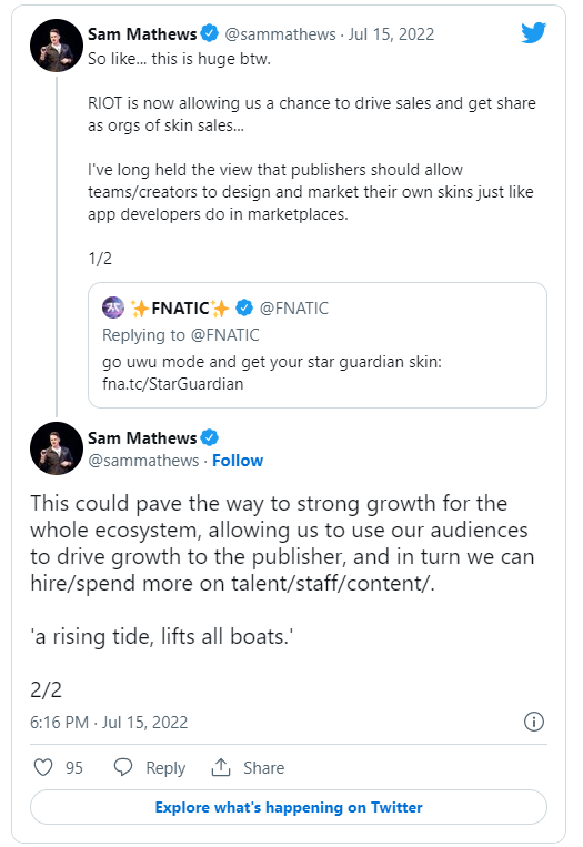 Nhưng với việc công bố dòng skin Star Guardian mới, Riot đã thêm một khía cạnh mới vào chương trình đối tác của họ - cơ hội để các đối tác kiếm được hoa hồng trên các skin được bán thông qua các liên kết của họ.