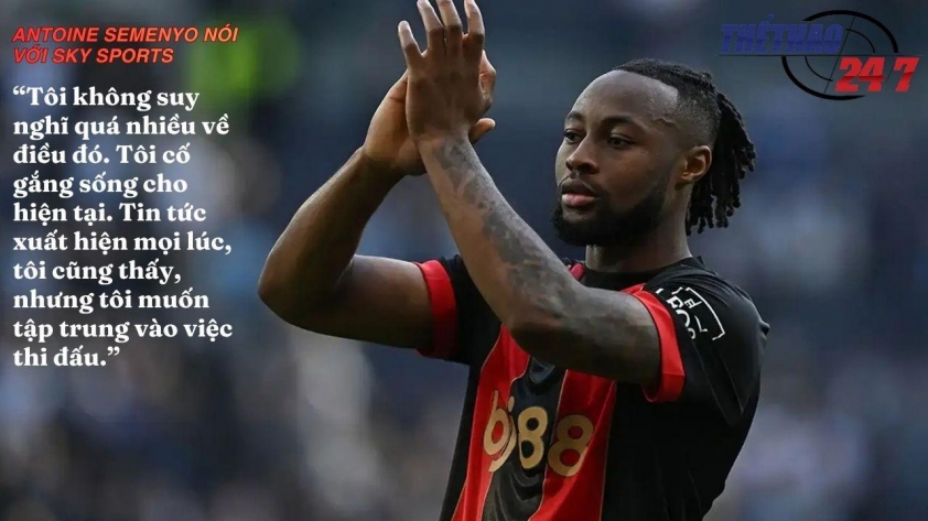 Trước khi mùa giải 2025/26 khởi tranh, Semenyo từng được đồn đoán sẽ rời Bournemouth, nhưng cuối cùng anh lại lựa chọn gia hạn hợp đồng 5 năm với đội bóng của HLV Andoni Iraola vào đầu tháng 7. Dẫu vậy, tin đồn ra đi vẫn tiếp tục lan rộng trước kỳ chuyển nhượng tháng 1 sắp tới, bất chấp mức định giá được cho là 115 triệu Euro.