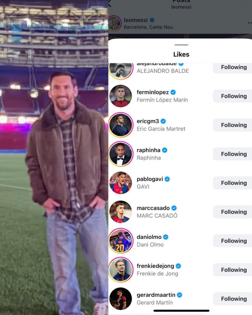 Đúng như dự đoán, không chỉ các cổ động viên mà cả những ngôi sao trong đội hình hiện tại của Hansi Flick cũng nhanh chóng thể hiện sự xúc động. Theo đó, ngay khi Messi đăng tải loạt ảnh tại Camp Nou lên Instagram, các cầu thủ như Raphinha, Gavi và Frenkie de Jong đã lập tức “thả tim”, như một cách bày tỏ lòng kính trọng và tình cảm dành cho huyền thoại từng mang lại biết bao vinh quang cho Barcelona.