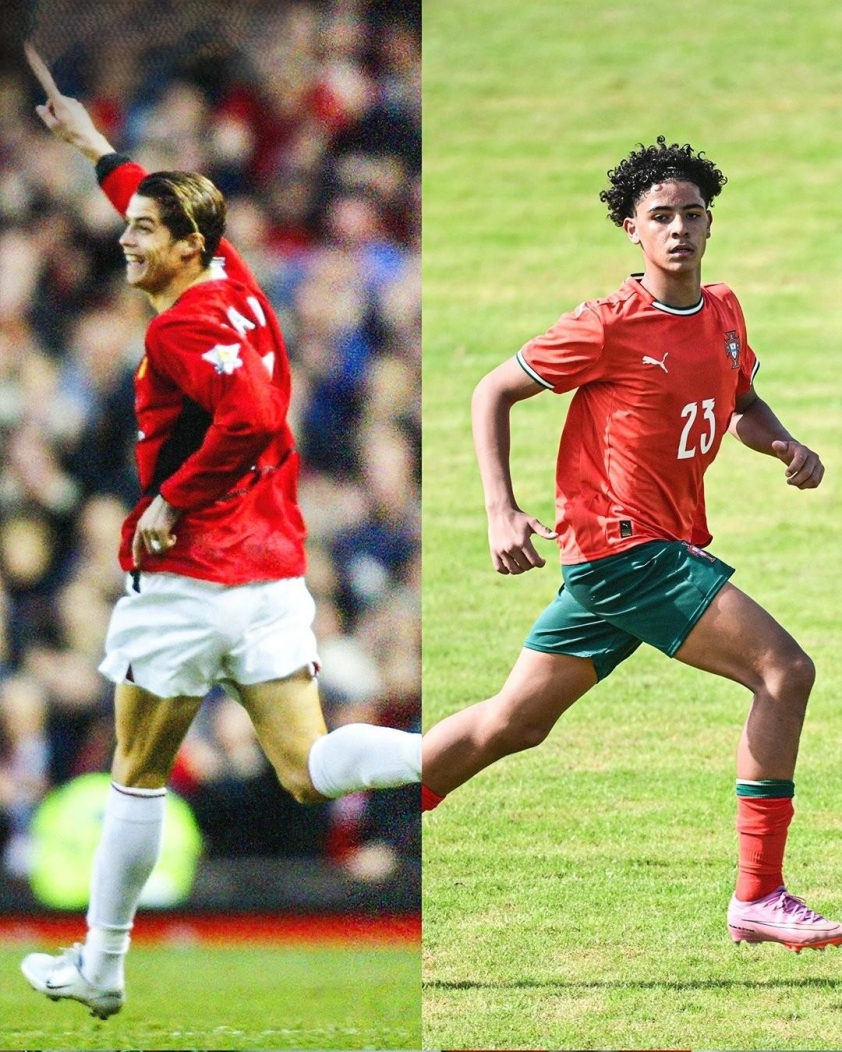 Ngày 1/11/2003, Ronaldo ghi bàn thắng đầu tiên cho Manchester United vào lưới Portsmouth. Từ đó, anh tiến bước để trở thành biểu tượng của sân Old Trafford, ghi tổng cộng 145 bàn trong hai giai đoạn khoác áo “Quỷ đỏ”. Và 22 năm sau, đúng cùng ngày ấy, con trai anh là Cristiano Jr cũng ghi bàn đầu tiên ở cấp độ quốc tế, mở đầu hành trình của mình trong màu áo U16 Bồ Đào Nha.