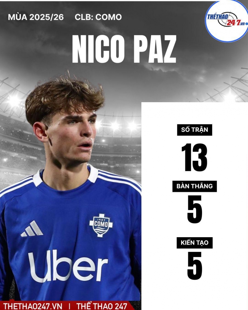 Chỉ hơn một năm sau khi gia nhập Como, giá trị của Paz đã tăng vọt lên gần 100 triệu euro nhờ màn trình diễn bùng nổ tại Serie A.