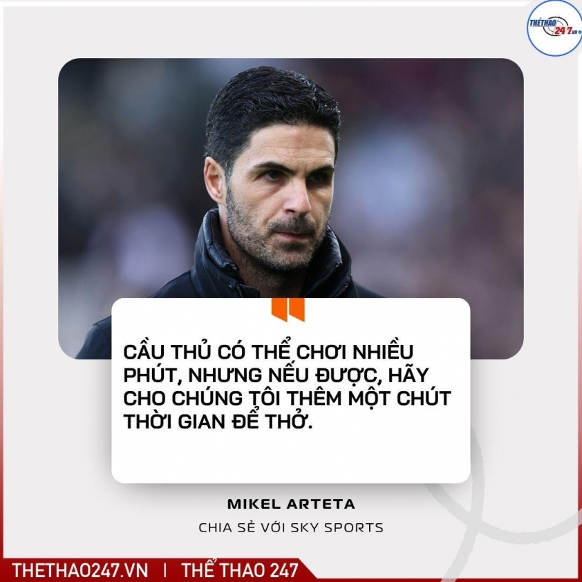 Declan Rice đã chơi rất nhiều phút cho Arsenal và cho tuyển Anh. Nhưng vấn đề là chúng tôi thi đấu khi nào? Chúng tôi đá vào tối thứ Tư và lại phải ra sân vào sáng thứ Bảy. Cầu thủ có thể chơi nhiều phút, nhưng nếu được, hãy cho chúng tôi thêm một chút thời gian để thở. Điều đó thực sự quan trọng cho sức khỏe của các cầu thủ.”